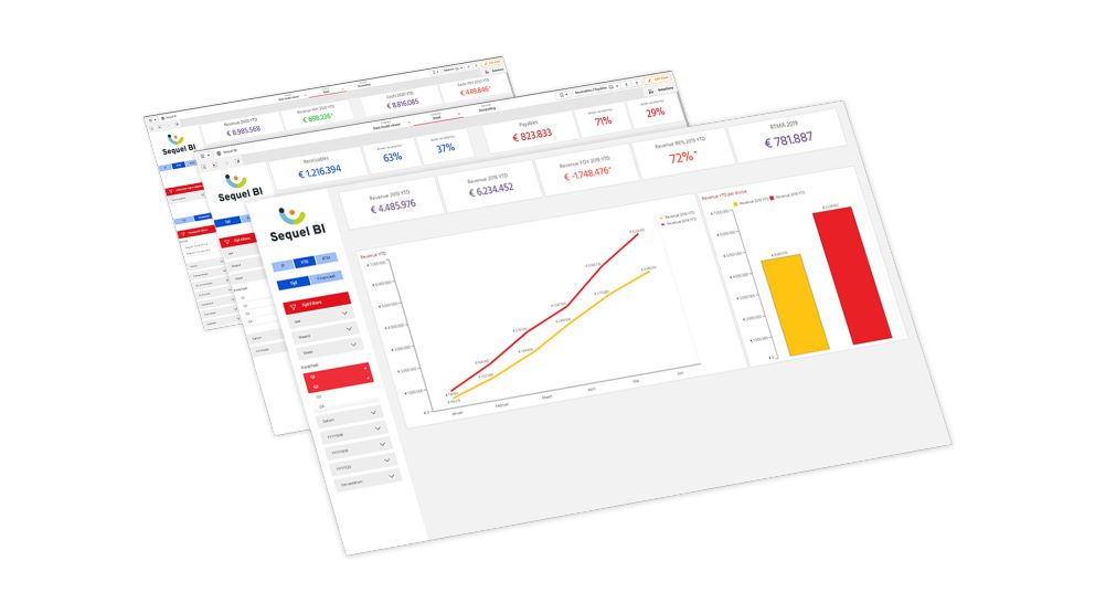 Alle relevante data wordt uit je bedrijfssystemen gehaald en geanalyseerd. We leggen verbanden tussen de verschillende soorten gegevens en creëren zinvolle statistieken. In een overzichtelijk dashboard heb je elke dag realtime inzicht in je bedrijfsdata. Inzicht in je omzetcijfers, vergelijkingen met eerdere jaren, sales-informatie. Alles overzichtelijk in één dashboard.